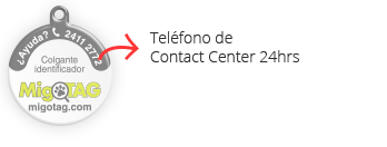 Si la persona que la encuentra no tiene como acceder a los datos de esa forma, MigoTAG también lleva impreso el teléfono de un Contact Center activo las 24 hs., a través del cual puede obtener tus datos de contacto o enviarte un mensaje para que puedan comunicarse.