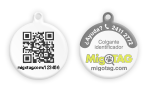 MigoTAG es un colgante identificador para mascotas, que lleva impresos un código QR, la dirección de una página web única y el número telefónico de un Contact Center 24 hs.